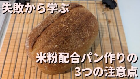 試作・検証どうも、パン職人のけんです。 今回は米粉パン作りの3つの注意点について、以前試作した米粉配合カンパーニュを例に説明をしていきます。 別の記事で米粉を配合した角食パンのレシピ・作り方を紹介しているのですが、今まで米粉を配合...