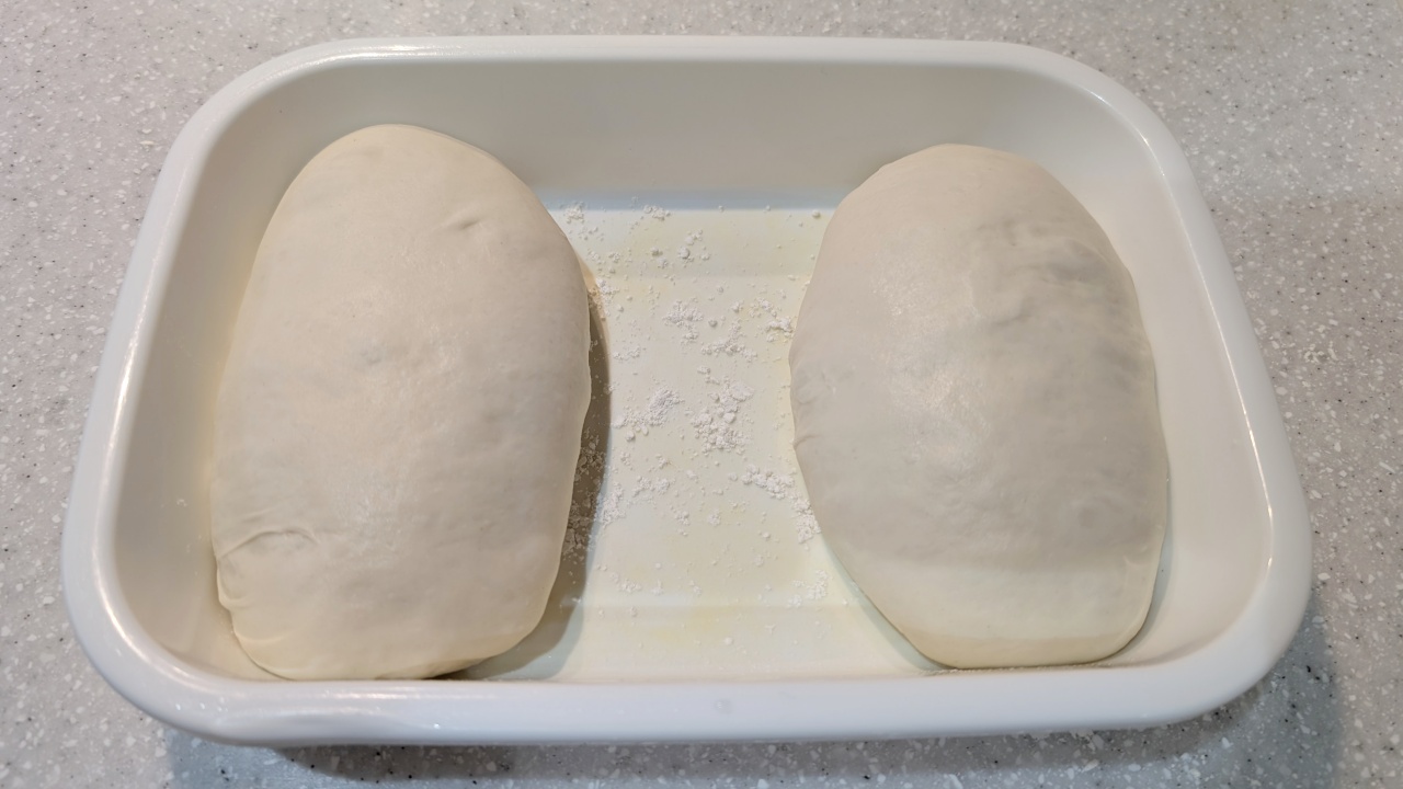 パン2個分のレシピ。生地量合計約517g(172.6%)。