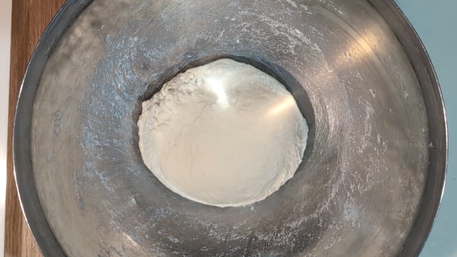 - 材料を全て計量し、ボウルに入れてこねます。目標こね上げ温度24℃。