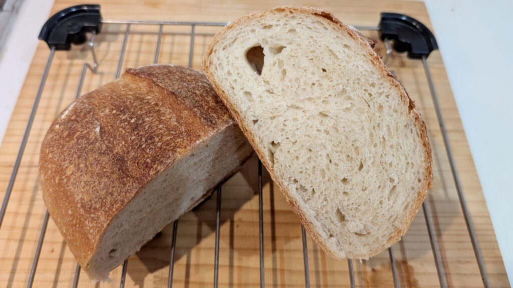 今回試作した米粉配合カンパーニュなら、焼成温度は10℃下げて様子を見る必要があるなと思いました。