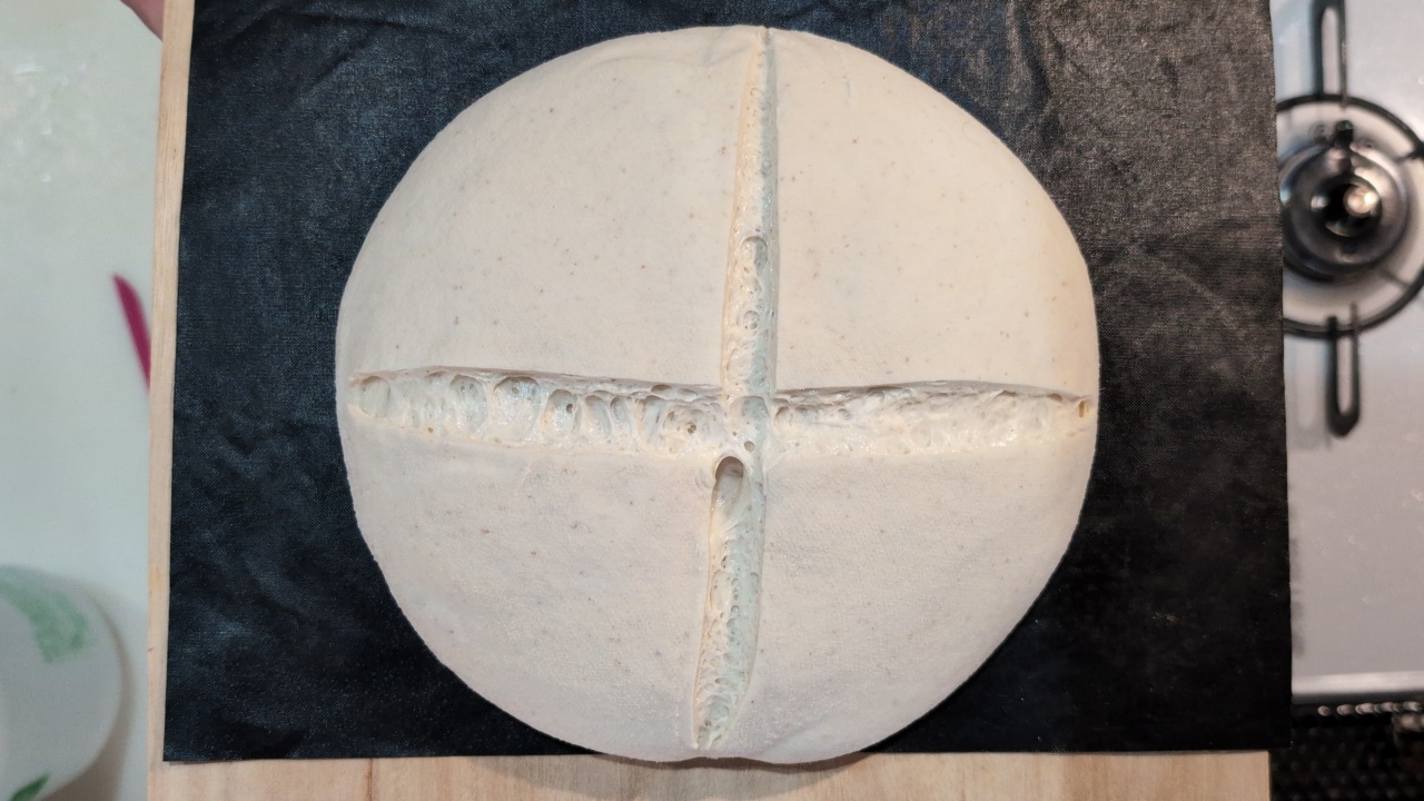 - ベーキングシートに移し、クープナイフ(もしくはナイフやカミソリ)で十字にカットを入れます。