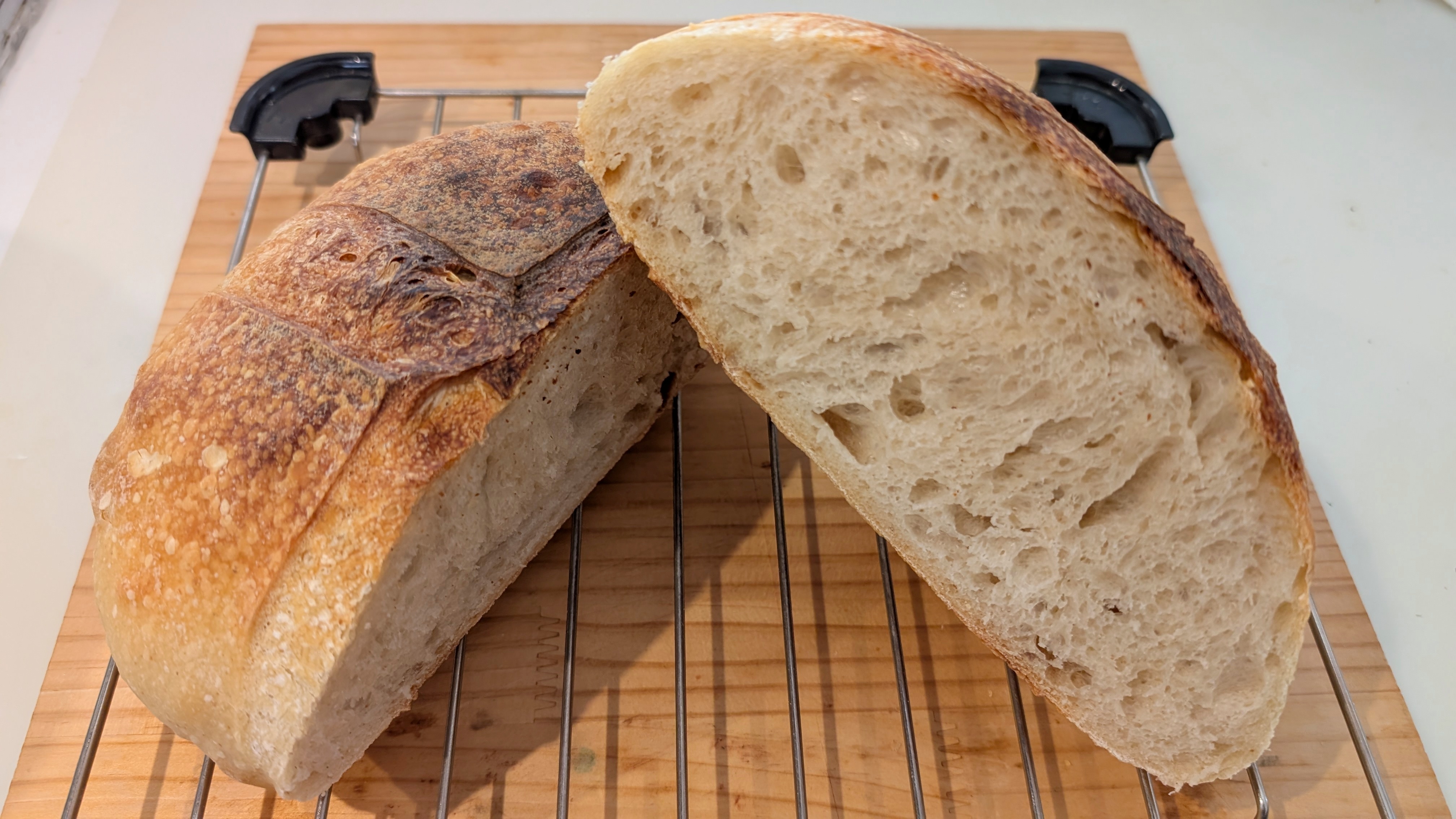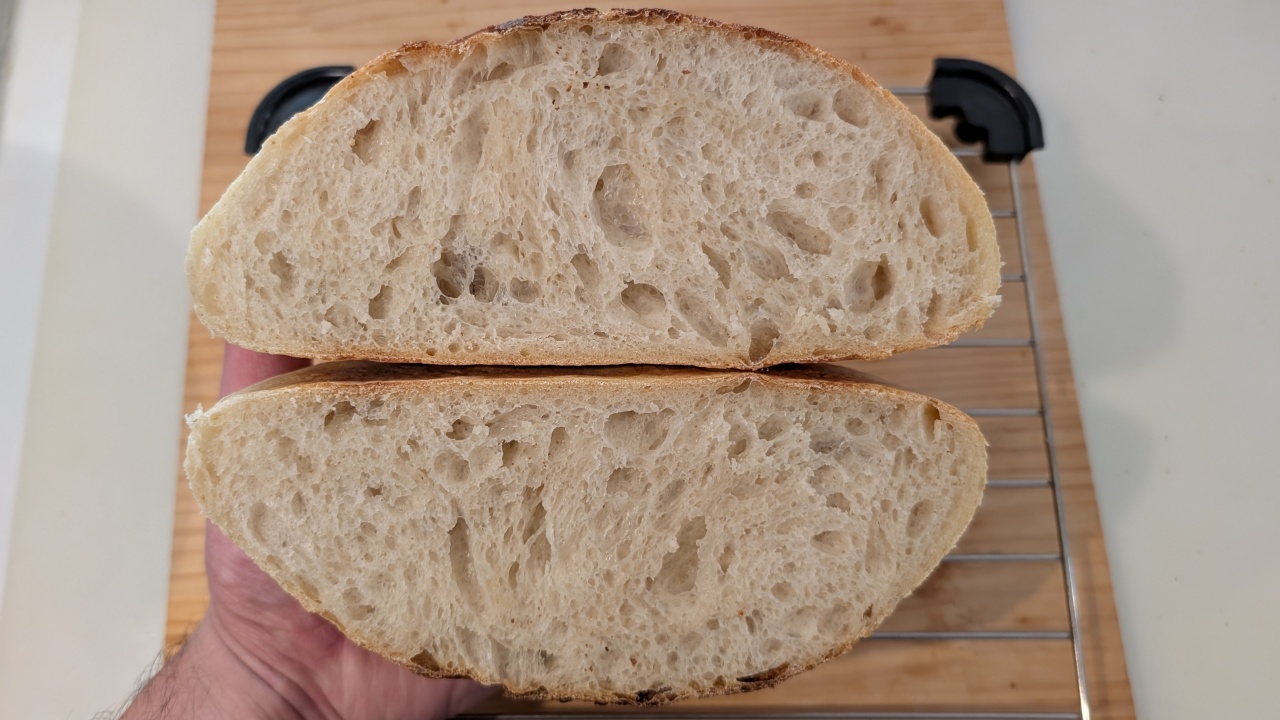 その分酸味が強く出るといったこともなく、香ばしいクラスト(外皮)としっとりしたクラム、そしてサワー種由来の風味、香り、旨味を持ったパンになりました。