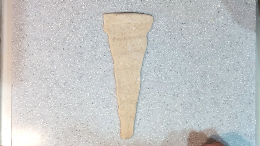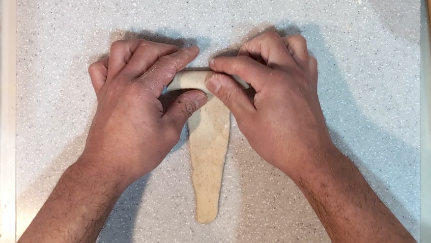 - 15分間生地を休ませます。生地をしずく型に伸ばし、再び15分間生地を休ませます。